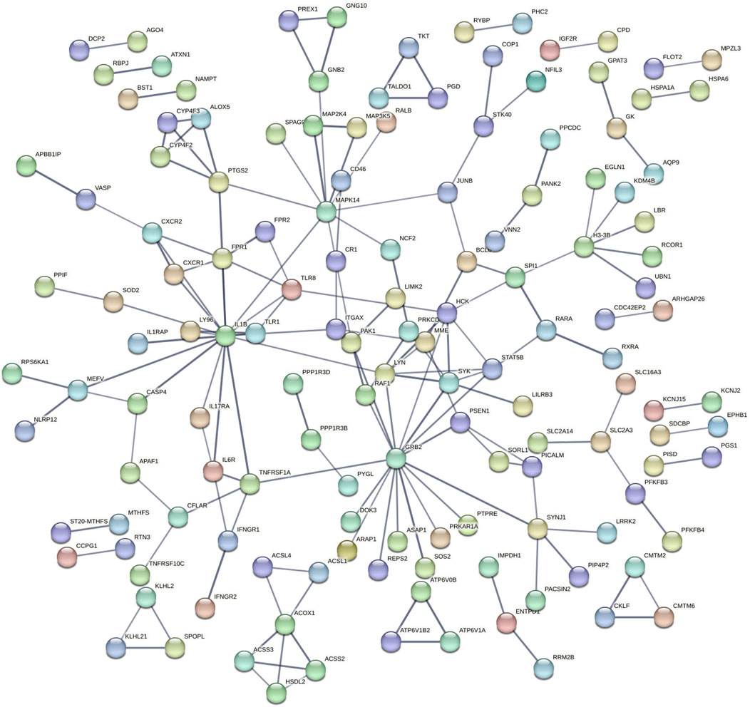 Figure 2. STRING analysis on the set of differentially regulated genes between female patients with suicide attempts and their respective healthy control group.
