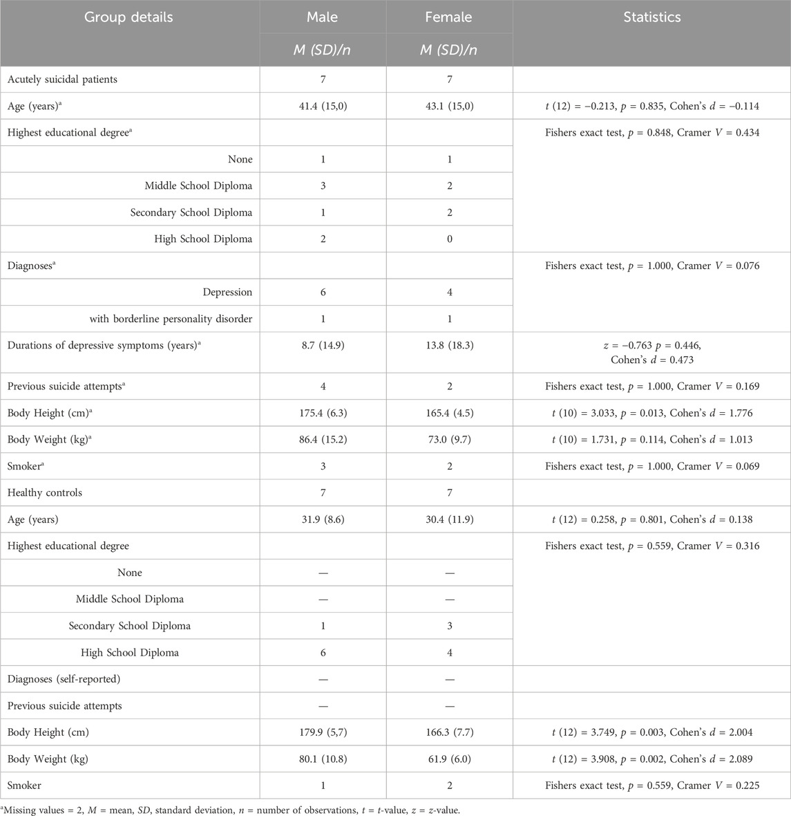 Soravia, S.-M., Gosemärker, A.-K., Streb, J., Dudeck, M., and Fritz, M. (2024). Does gender-specific suicidal symptomatology exist? Initial work on a partially-novel, multi-questionnaire-based characterization of acute suicidal patients. Cogent Psychol. 11, 2328911. doi:10.1080/23311908.2024.2328911