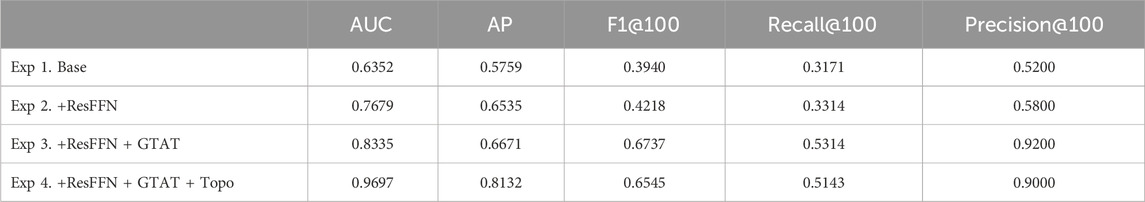 1. Topological Feature Modeling: We explicitly extract topological features such as node degree, common neighbors, and shortest path length, which are input as topological features directly involved in attention weight calculation (Zhao et al., 2022). Unlike traditional attention mechanisms that rely solely on node features, this mechanism encodes structural information into the weight allocation process, effectively enhancing the attention mechanism’s sensitivity to structural differences (Xiong et al., 2025). These topological features are consistent with those extracted in the earlier feature fusion module, ensuring the reuse and consistency of structural information across different stages, thereby enhancing the model’s expressive efficiency.