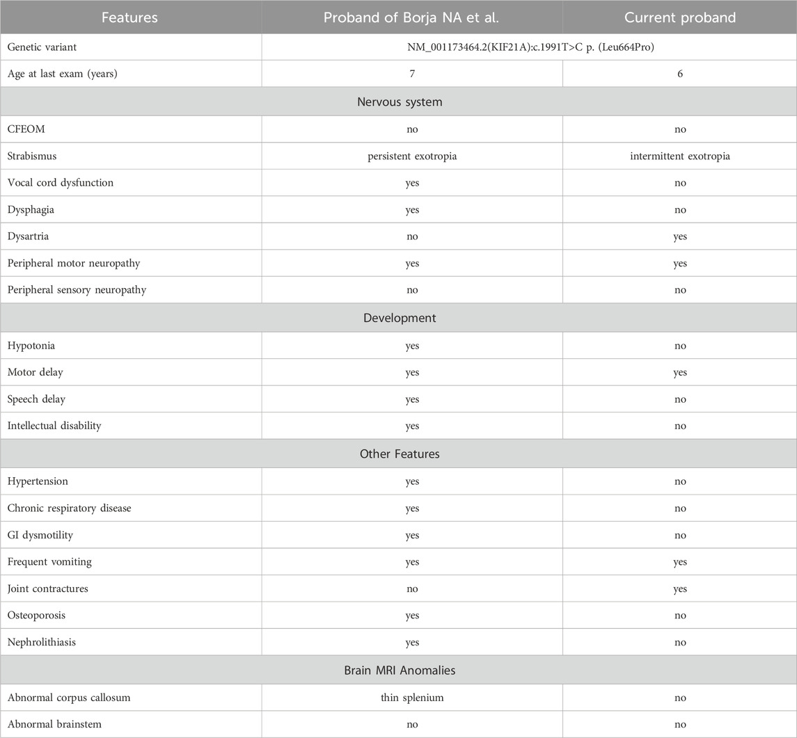 Table 1. Comparison of the proband phenotype in the current study and the previous reported case (Borja et al., 2025).