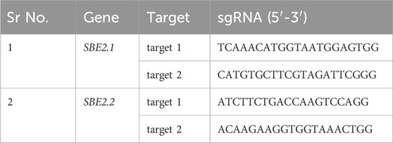 Table 1. Target sgRNAs for SBE2.1 and SBE2.2 genes.
