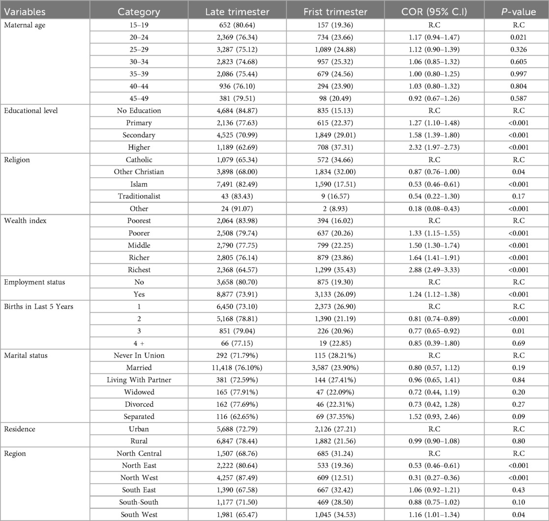Table 2. Bivariable analysis of sociodemographic factors influencing timing of first ANC visit in Nigeria, 2018.