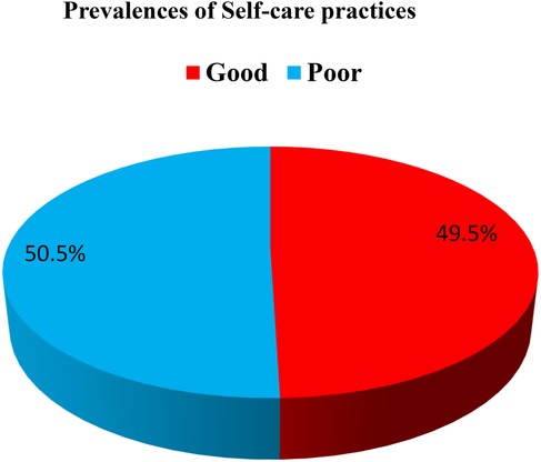 Figure 3. Prevalence of self-care practices among women attending public health facilities in Jimma Town, Oromia, Southwest Ethiopia, in 2023.