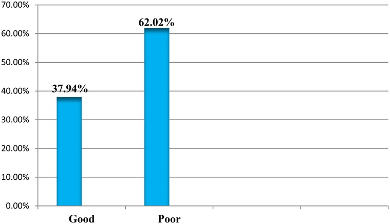Based on the study findings, most (62%) of the participants had poor social support, whereas only about 38% had good social support (Figure 5).