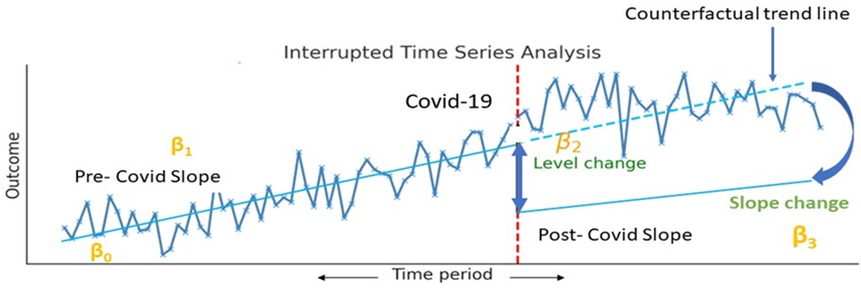 • β2: Immediate post-COVID-19 level change (Intercept Shift),
