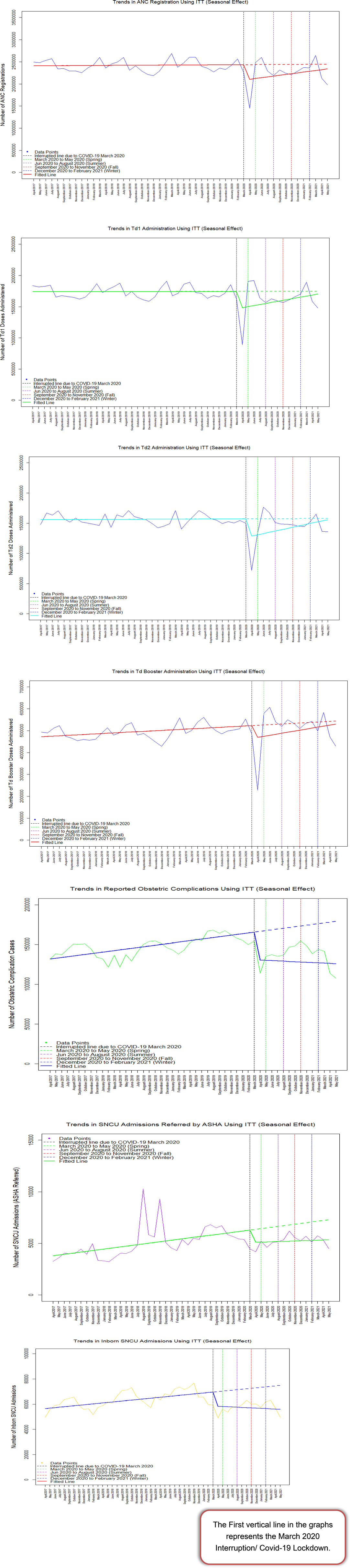 Table 2. Interpreted time series modeling showing seasonal variation in MCH indicators during the COVID-19 pandemic, India.