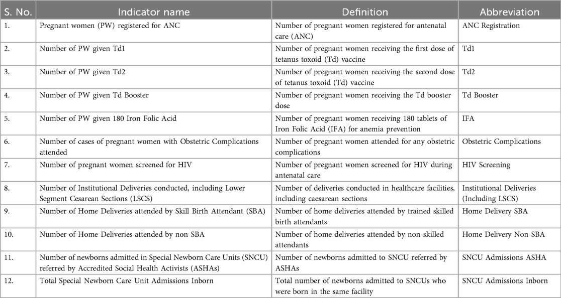 The study focused on 12 MCH indicators obtained from HMIS data. Detailed information on these indicators is provided in Table 1.