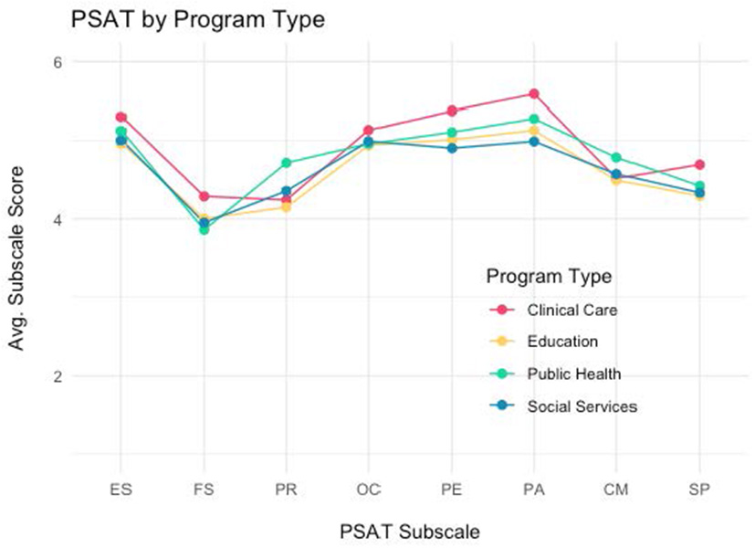 PSAT subscale scores by type of program.