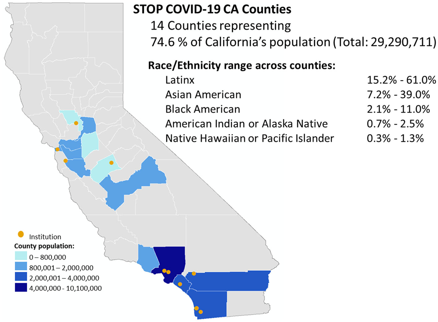 STOP COVID-19 CA academic-community teams showing county served across California.