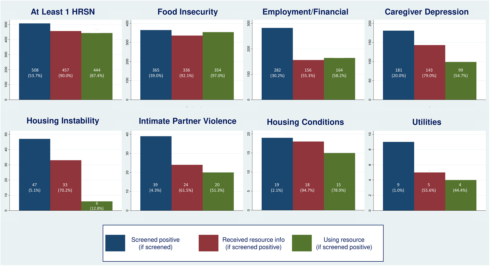 What proportion of families use resources after receiving resource information for identified HRSN?