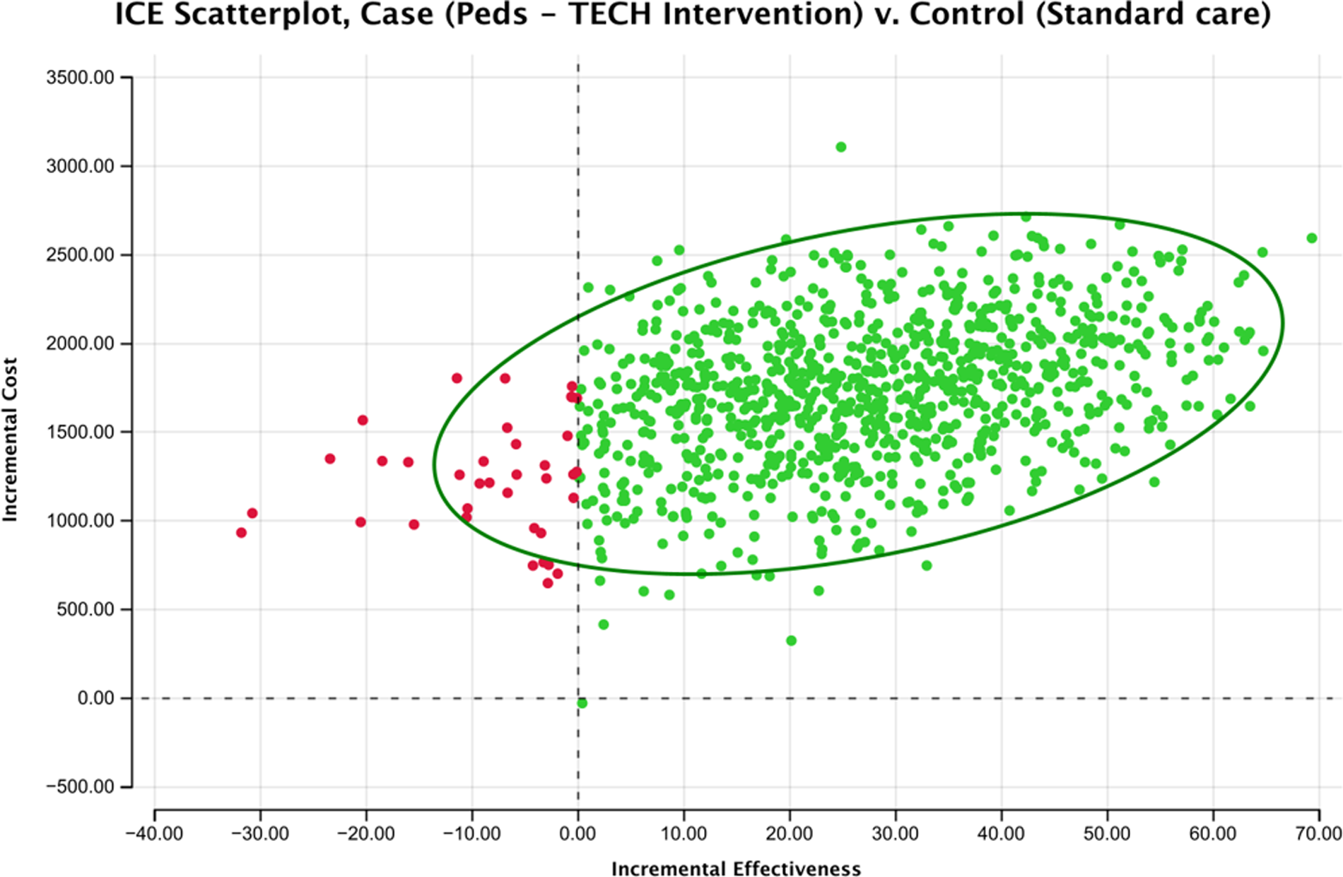 Base case analysis results for Peds-TECH intervention compared to standard of care.