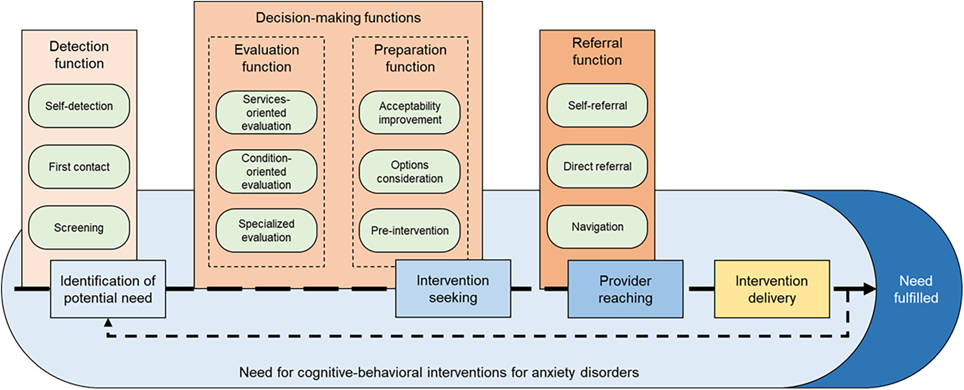 The resulting model illustrates how actors can target clinical-administrative processes fulfilling the demand management functions of detection, evaluation, preparation, and referral to help patients progress on the path of access to CBTs.
