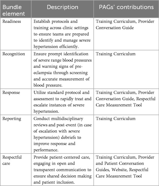 Table 1. The 5 Rs of the AIM severe hypertension during pregnancy and postpartum period safety bundle and corresponding PAG contributions (9).
