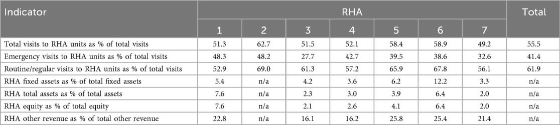 Table 1. Operational and financial figures of RHAs as shares of total figures, 2022.
