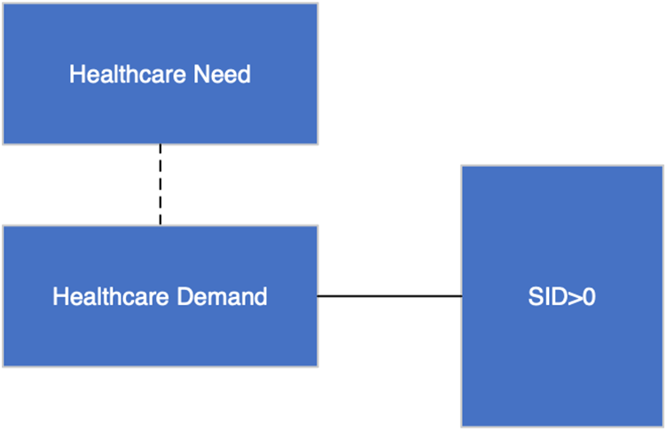 Supplier-induced demand (SID > 0). The dashed line denotes “not linked”, whereas the solid line denotes “are met”.