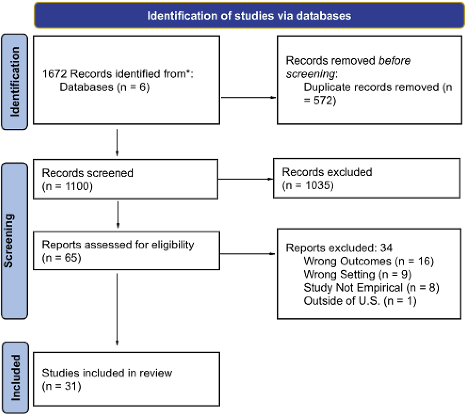 A comprehensive electronic database search of peer-reviewed literature was performed using six databases: Child Development & Adolescent Studies, CINAHL Complete, MEDLINE, Web of Science, PubMed, and PsychInfo from 2000 through March 2022. An updated search was conducted to include articles published from 2022 to 2025. Considering gaps in the literature, we included articles published in the last 25 years to help us provide rich data on existing literature. A Boolean search strategy with the “AND” and “OR” commands was used to extract relevant articles based on the following keywords in different combinations: (adolescent* or teen* or young adults or youth) AND (clinical decision support system or clinical decision making or decision-making) AND (personal autonomy or autonomy* or support for autonomy) AND (United States or America or USA or U.S. or United States of America or U.S.A.). A thorough hand search of each selected article's bibliography was conducted to identify other articles relevant to this study. The search outcomes were reported using the Preferred Reporting Items for Systematic Reviews and Meta-Analyses (PRISMA) guidelines, as seen in Figure 1.