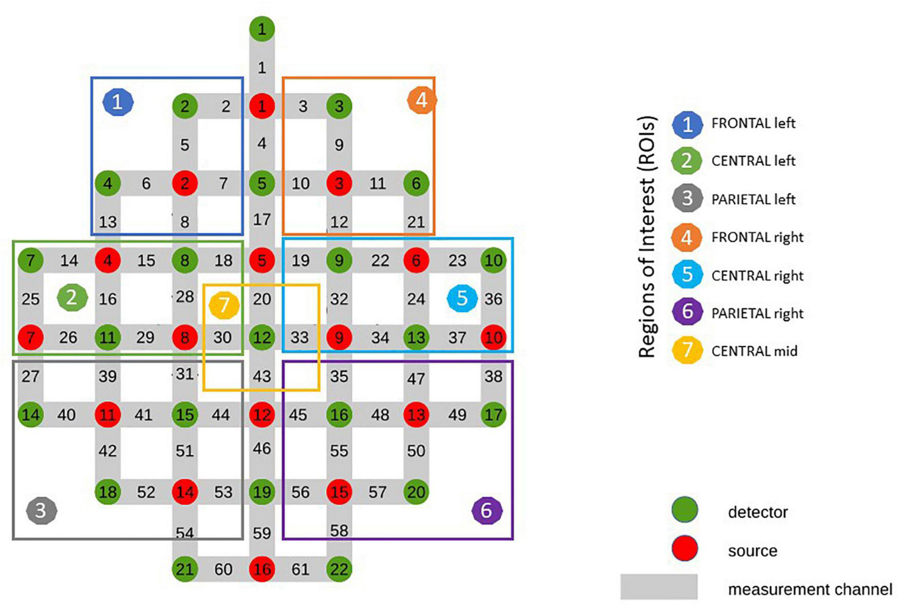 Optode Montage and Regions of Interest (ROI).