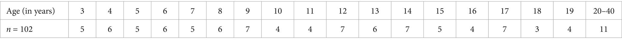 All CI subjects had more than 1 year of CI experience at the time of testing. They had seen audiologists within 6 months of the testing session or saw audiologists on the same day of testing. All CI subjects were confirmed by their audiologists to be successful, full-time CI users, with their devices functioning appropriately at the time of the study, as verified through subject reports and listening checks. Parents and audiologists did not express any concerns about the development of the child; all children had not been diagnosed with other difficulties. Table 2 shows the age distribution of participants in the CI group. One 10-year-old participant was unable to complete testing in noise due to time constraints and was therefore excluded from further analysis. Stimulus artifacts from CI systems can hinder the ability to clearly observe neural potentials of interest (Hu et al., 2024a), particularly when the stimulus duration overlaps with the latency of the neural response, as seen in the ACC paradigm (Undurraga et al., 2021; Jeon et al., 2023, 2025). To address CI artifacts, our laboratory employs techniques such as band-pass filtering (1–30 Hz) and balancing electrode impedances. These strategies, along with others detailed in Jeon et al. (2025), are effective in reducing artifact interference. However, despite these measures, data from two participants (aged 13 and 20) were affected by artifact contamination and were excluded from further analysis.