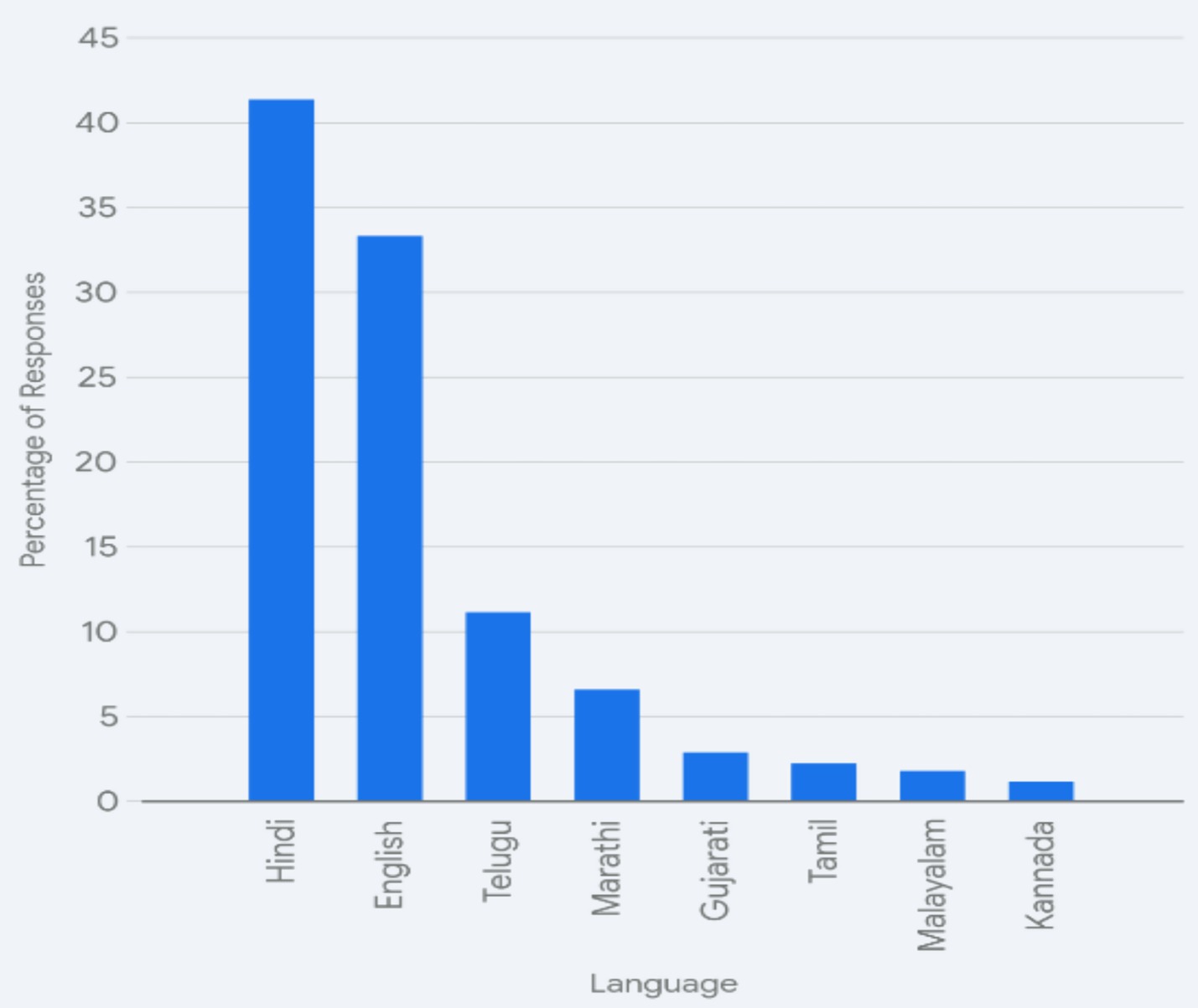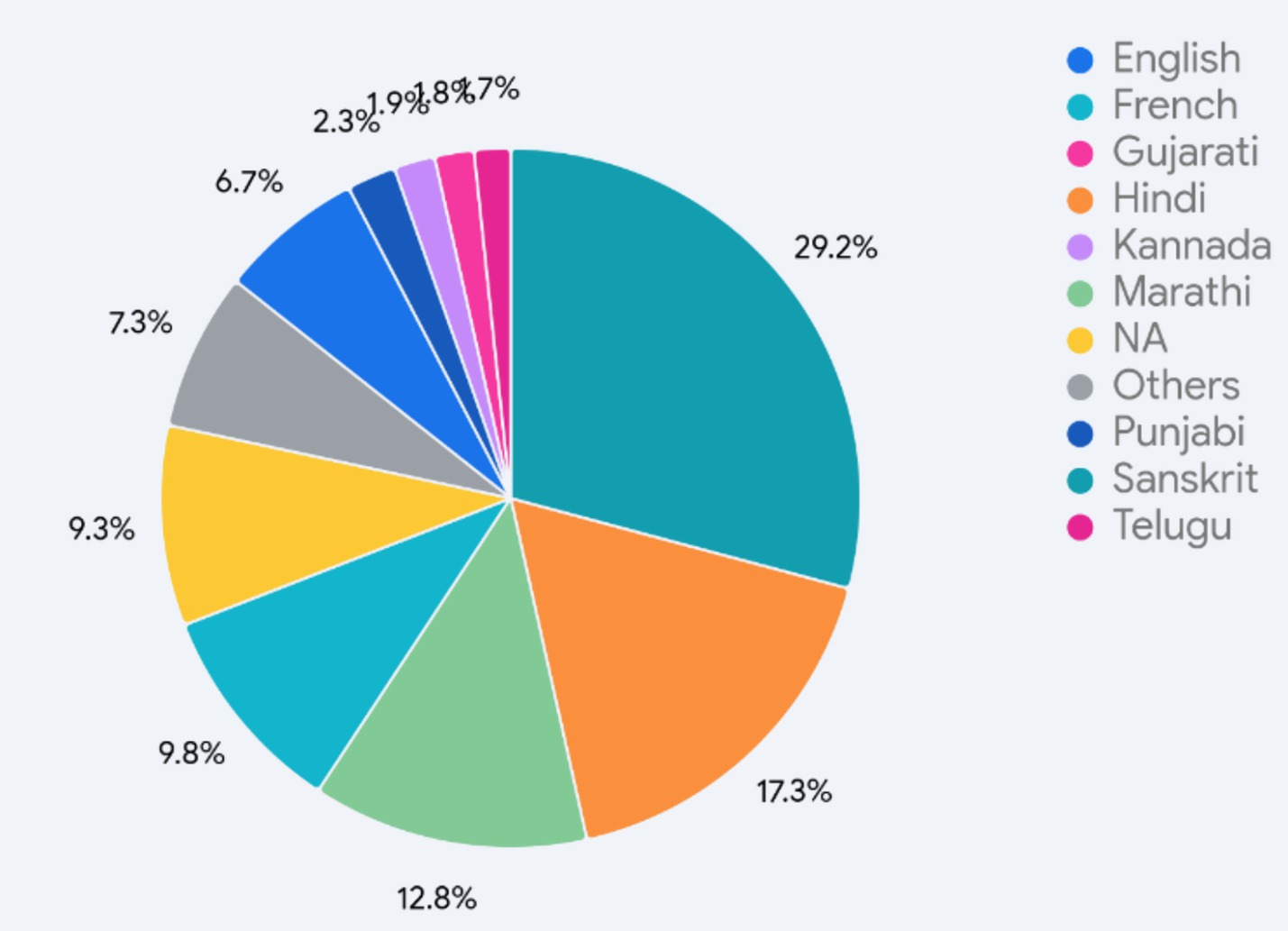As visualized in Figure 1, Hindi and English are the dominant languages for almost 75% of the students. Given the practical need to also communicate with students from other regions, we expect the two national languages to crowd out the others. While there is some use of regional languages like Marathi (6.5%), Gujarati (2.8%), and Telugu (11.1%) given the overall percentage of Telugu speakers, very few of the unique languages mentioned in the responses accounted for the overall dominance.25