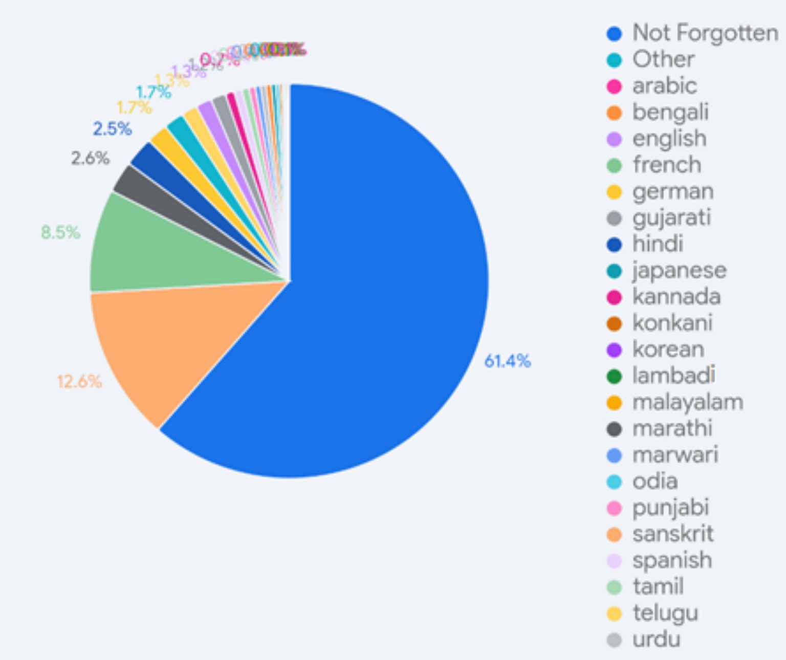 In the context of multilingualism and changing patterns of use, we asked the students if they had forgotten any of the languages they had acquired or learned. The data are presented in Figure 6. A majority of the students (61%) said that they had not forgotten any of the languages they knew (which included a large number of Hindi–English bilinguals), while the rest (about 39%) indicated some language loss. The kind of loss also varied from a loss of writing skills (forgetting the script) and some lexical attrition to a complete loss. Unsurprisingly, the most frequently forgotten languages were those acquired in school, formally, as a third language. Sanskrit, the third language that is most frequently learned (29%), was the most frequently mentioned forgotten language (12.6%). Other languages mentioned include French, Spanish, German, Hindi, Marathi, Telugu, Gujarati, Kannada, Tamil, Marwari, Urdu, Punjabi, including many potential L1s. The regional language that was acquired was often the one lost, apart from the languages that were learned merely in a classroom, and comprised almost 10% of the responses. Language attrition over time was significant but not limited to L1 that was acquired first. There seemed to be a mixed pattern arising as much from a lack of functional relevance as from a lack of sustained exposure, which is critical to language maintenance. The TLF, then, is not in itself adequate to ensure retention.