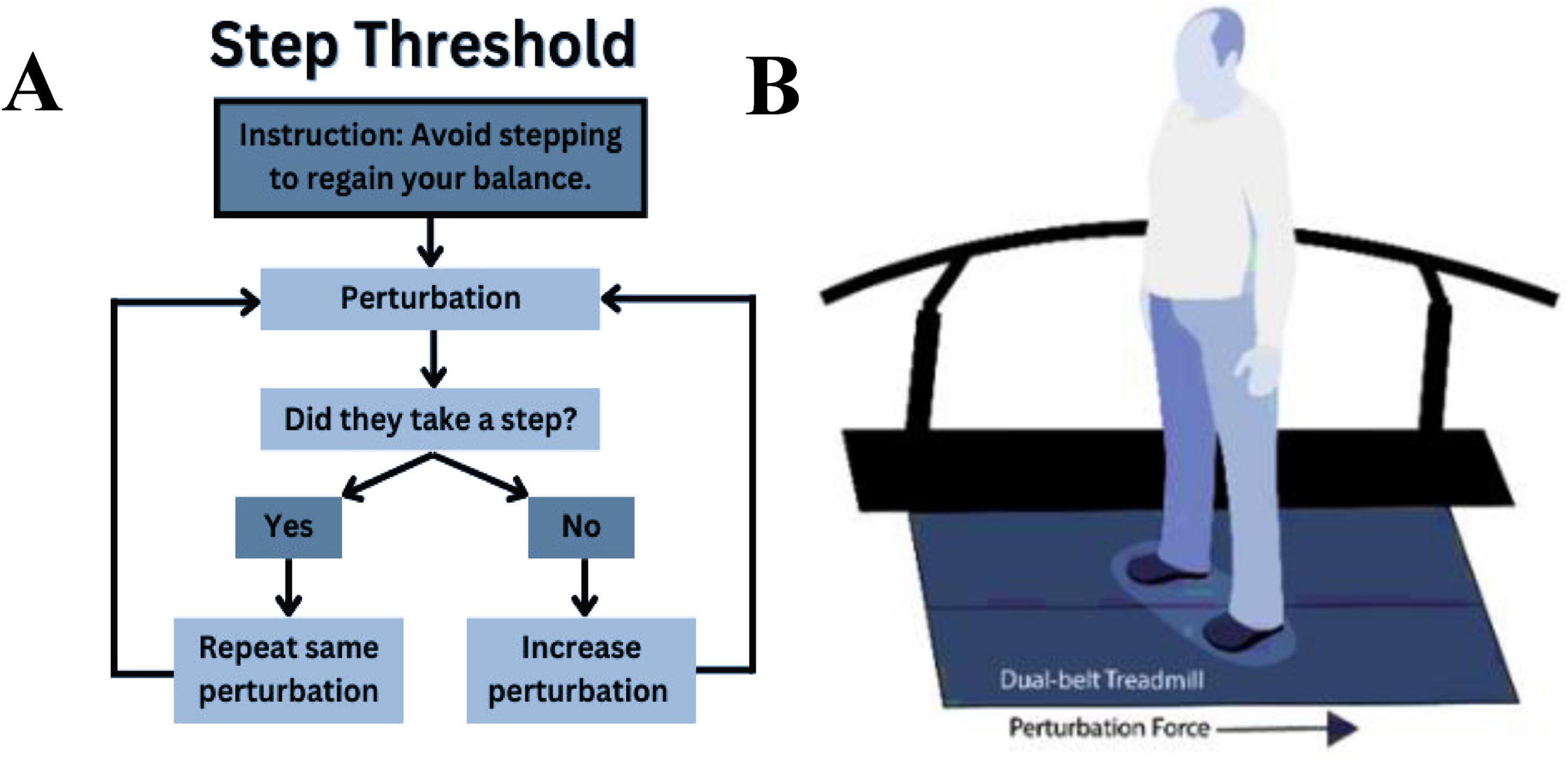 While the current study utilized equipment that is not common in most clinical settings there are alternative approaches to perform this protocol. A recent study used a waist-mounted spring scale to assess stepping thresholds in individuals with diabetes (Rosenblatt et al., 2021). In this task, increasing body lean created incremental loads as a percentage of body weight measured via the scale to standardize the task. Individuals were released without warning and instructed to try to avoid stepping (Rosenblatt et al., 2021). Thus, it is possible to implement this task in a clinical environment.