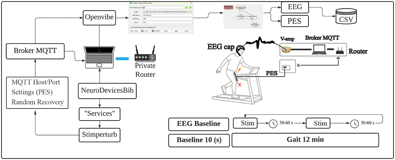 The OpenViBE acquisition software was used and integrated with the PES system to manage EEG signal acquisition. This setup allows for the synchronous capture of cortical activity with the stimuli generated by the PES system.