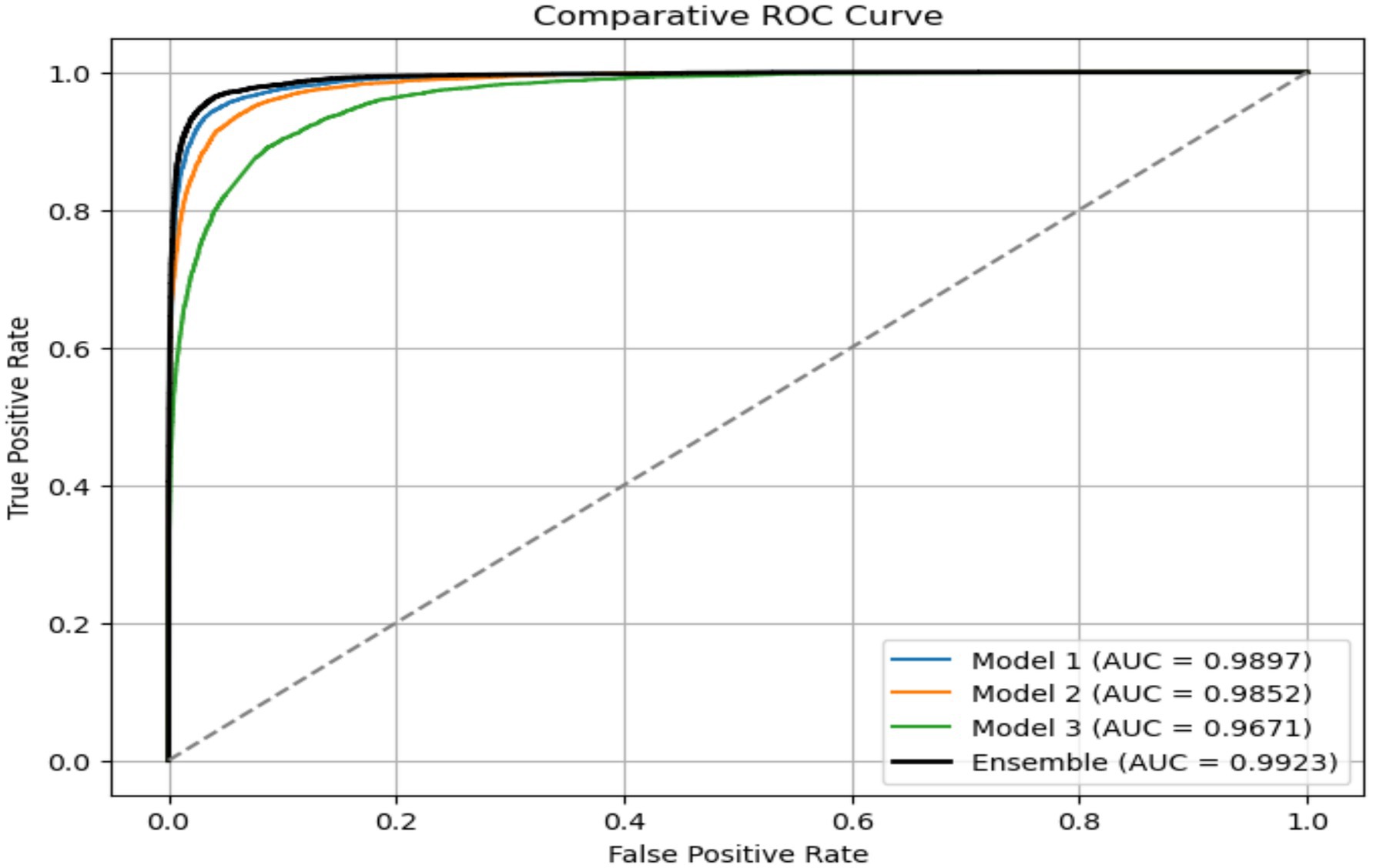 The ensemble approach leveraged the complementary strengths of these individual models, achieving the highest overall performance of 99.23% on the AUC ROC curve. This superior performance demonstrates the value of combining different architectural approaches and optimization strategies in a unified framework.