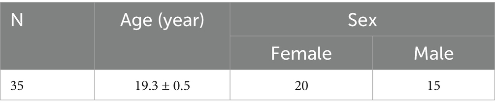 Thirty-five participants (see Table 1) completed all three tests, and all the data were collected.