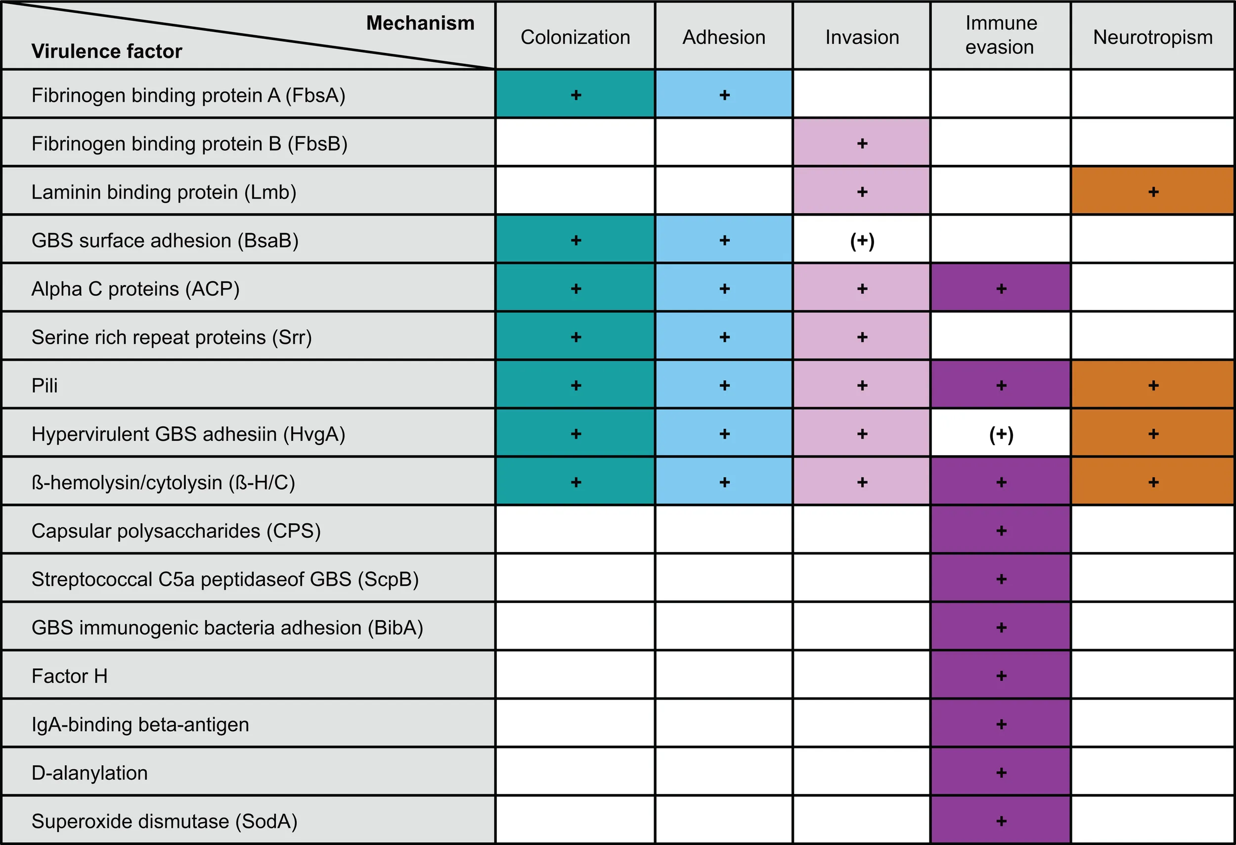 GBS virulence factors and their role in transition from colonization to invasive disease.