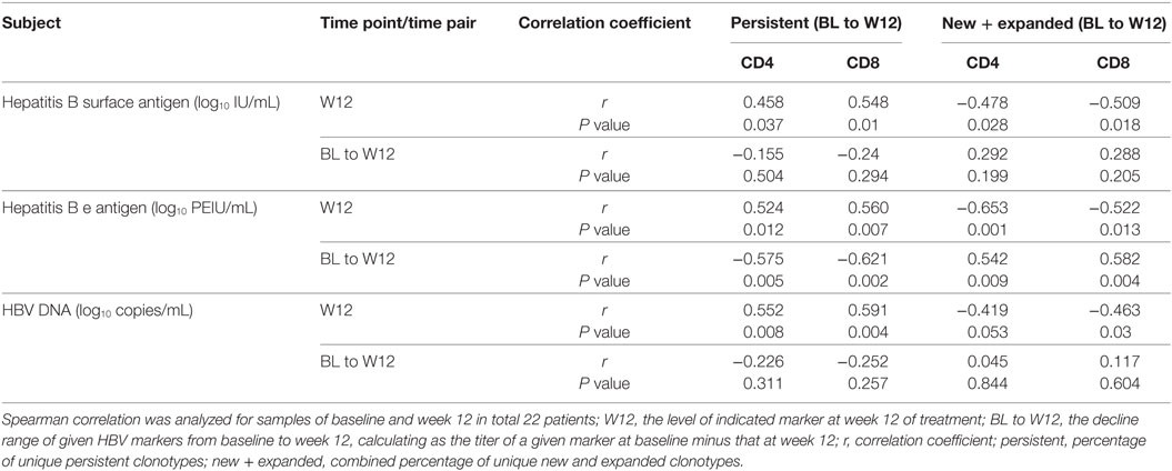 Table 2. Correlation between hepatitis B virus (HBV) antigen levels and the percentage of clonotypes.