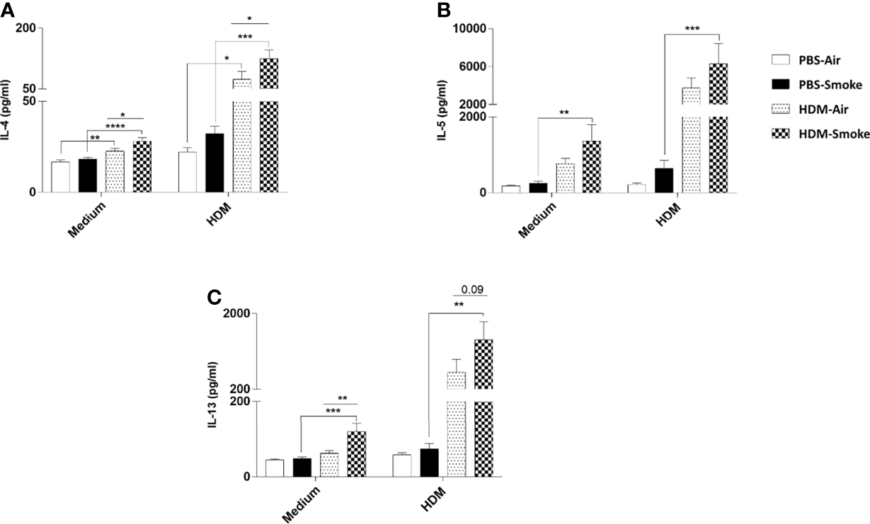 Prenatal and Postnatal CS Exposure Increased the IL-4, IL-5 and IL-13 Production After Ex Vivo Restimulation of Lung Cells From Offspring Upon HDM Challenge