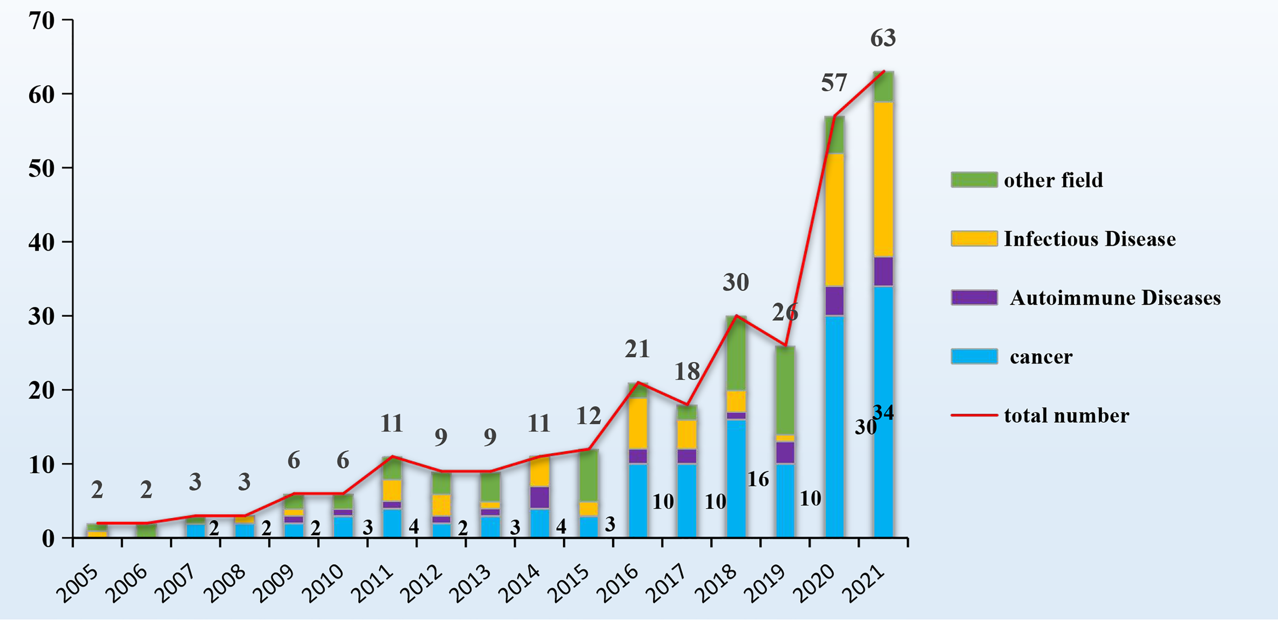 | multivalent PD-L1/TIGIT BsAb | Colon cancer | PD-L1/TIGIT | Multivalent bispecific | 2021 | (38) |