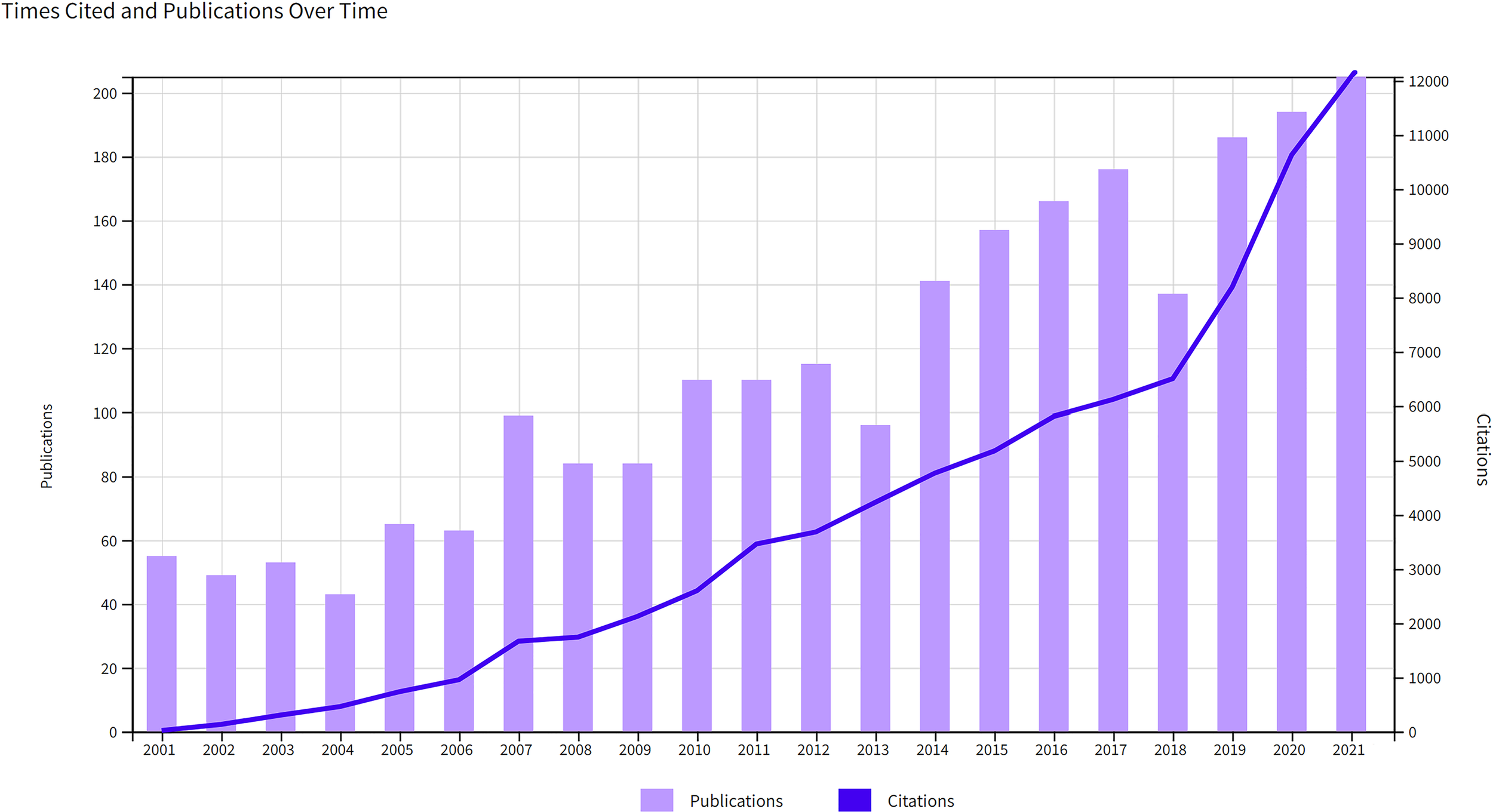 Annual growth trend in publications and citations