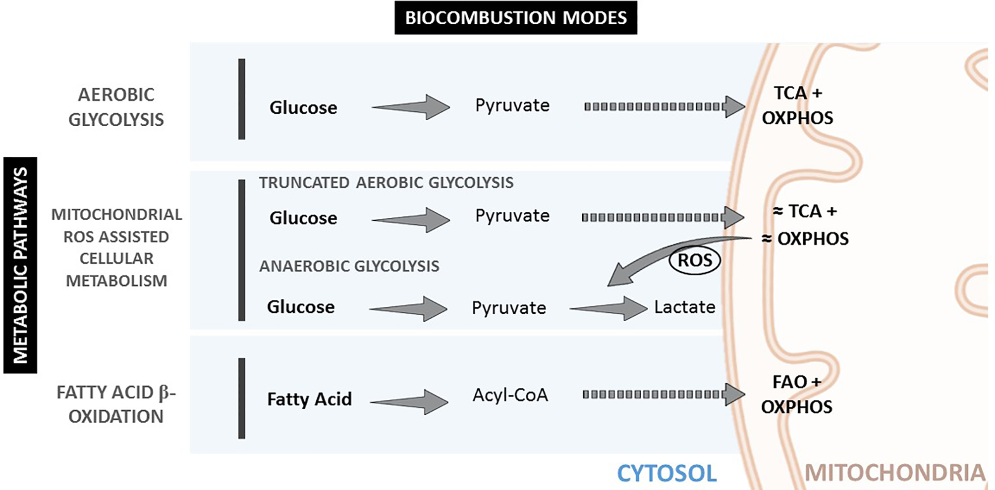 | Mitochondrial ROS assisted cellular metabolism | Glucose | Oxygen &ROS | Anaerobic/ truncated aerobic glycolysis |