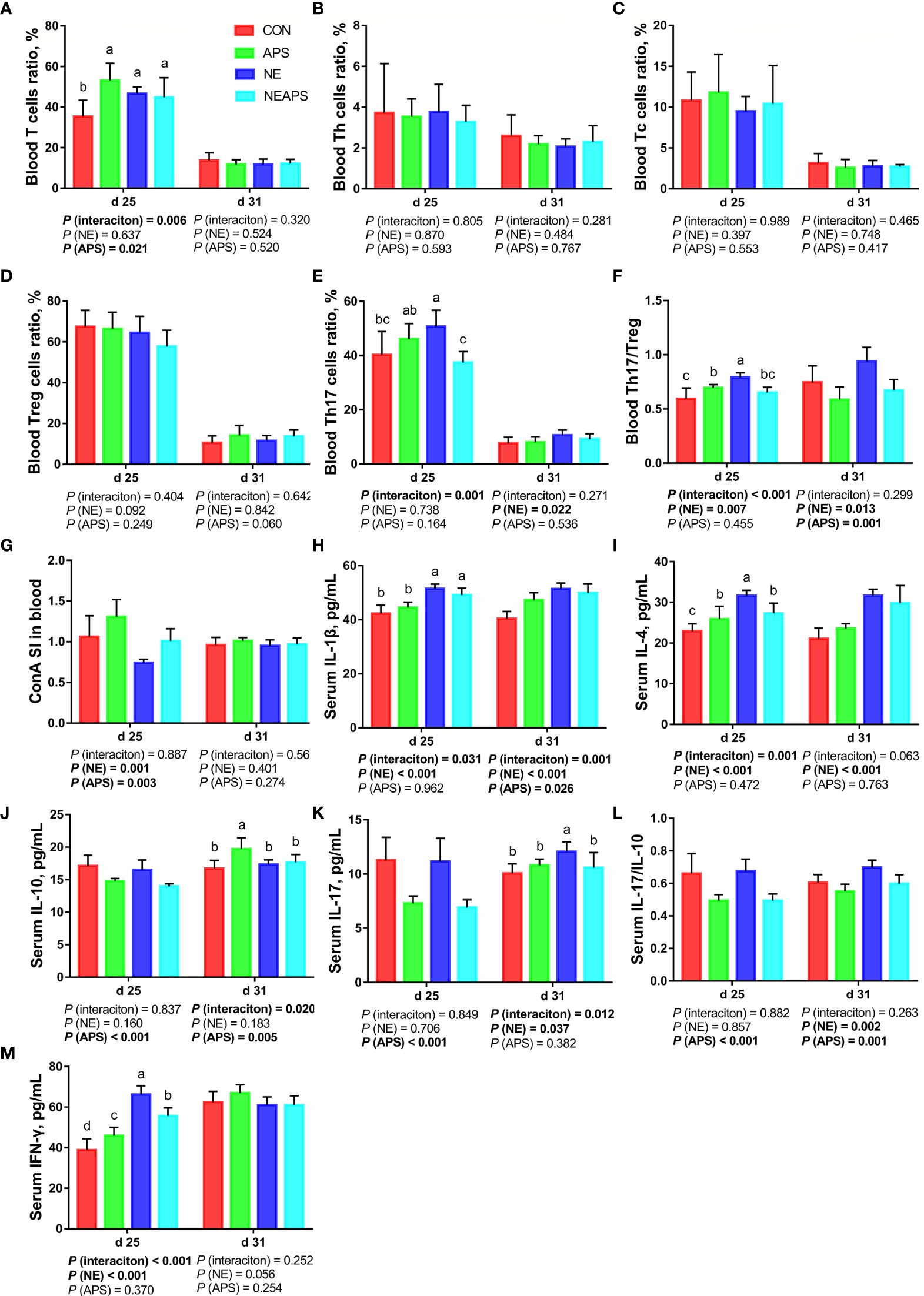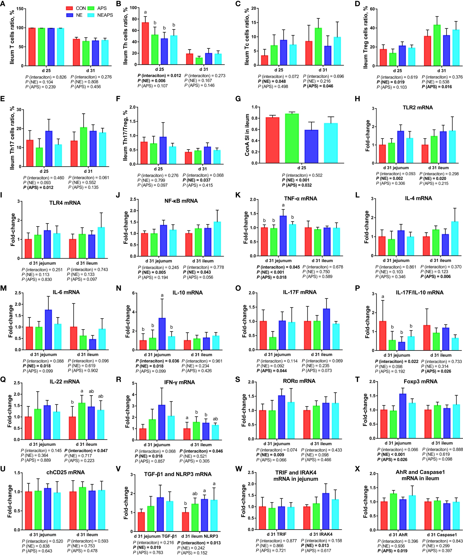 Astragalus polysaccharide (APS) can regulate the immune function of the body. With immune-enhancing and anti-inflammatory properties, it has a unique two-way regulatory ability. Studies have found that the addition of 4 mg/kg APS to the diet has an immunomodulatory effect on broilers challenged by LPS and can reverse the negative effects of LPS. This includes decreases in daily weight gain and feed intake and decreases in the number of intraepithelial lymphocytes and villus height in the jejunum. APS can also reduce the feed conversion rate, serum NO levels and the heterophilic cell/lymphocyte (H: L) ratio (11). Studies in mice have found that APS may effectively alleviate TNBS-induced experimental colitis in rats by restoring the number of Treg cells and inhibiting the level of IL-17 in Pyle’s nodes (12). However, the effect of APS on Th17/Treg balance has not been reported in poultry.