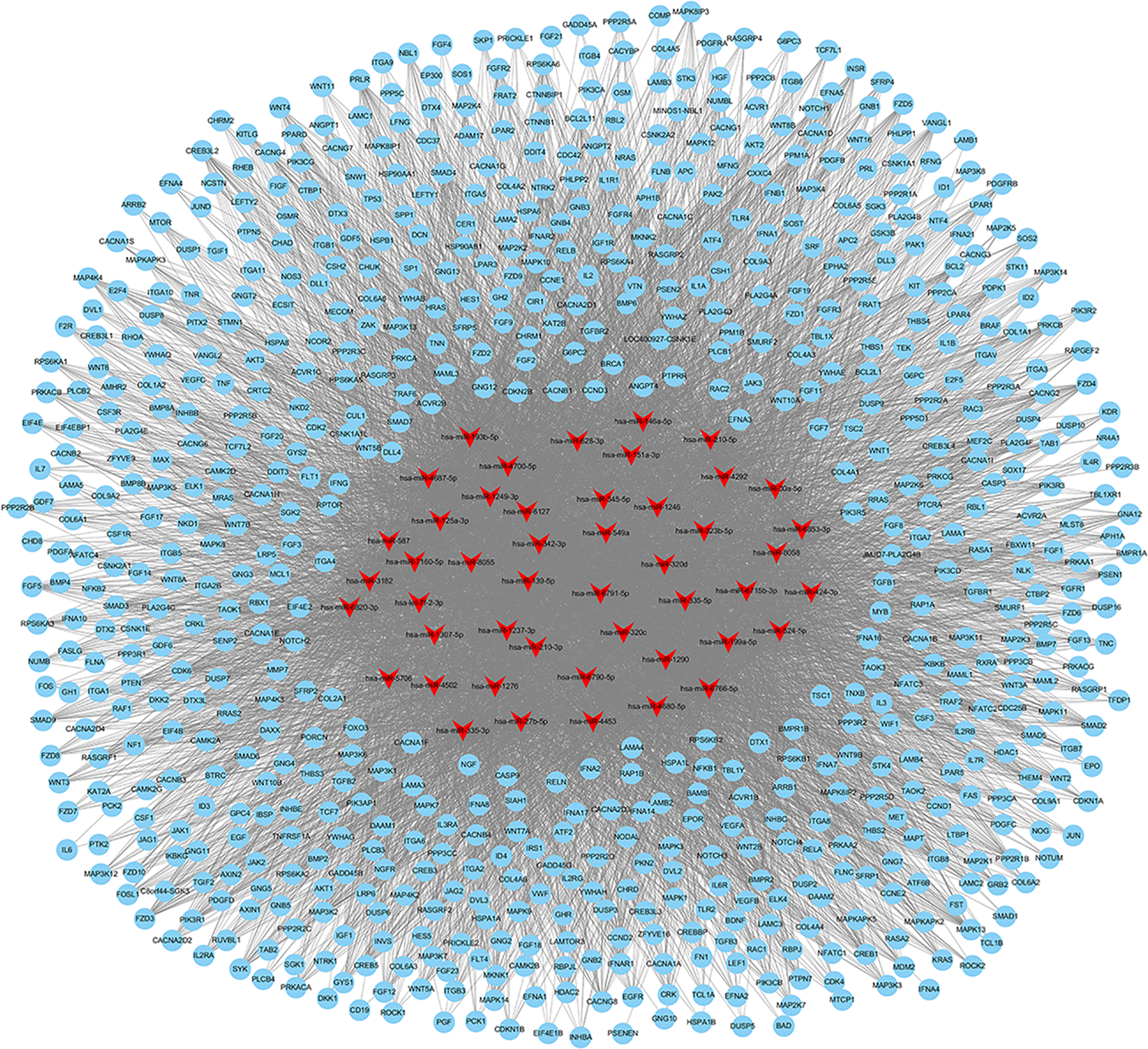 Networks of 717 enriched pathways associated with 47 differentially expressed miRNAs.