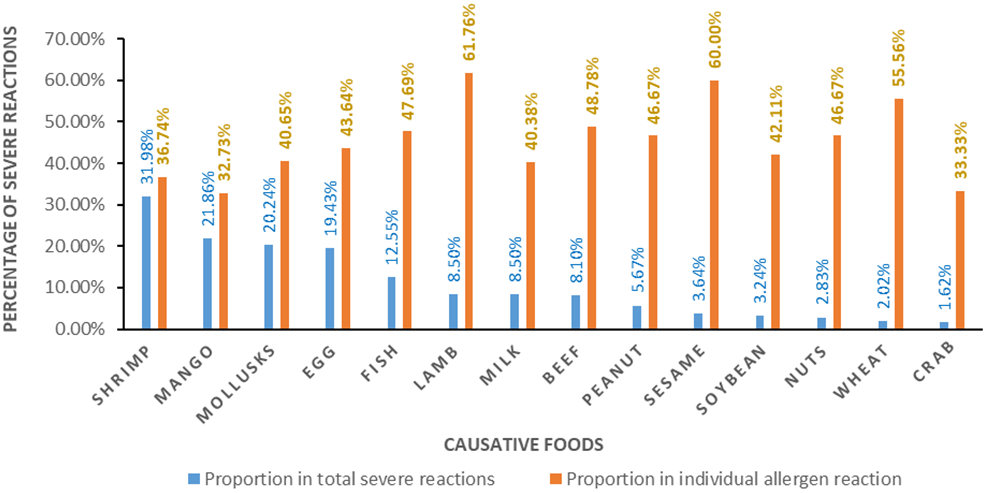 | Causative Foods | FA (n) | FA Prevalence (%) | FA Proportion (%) |