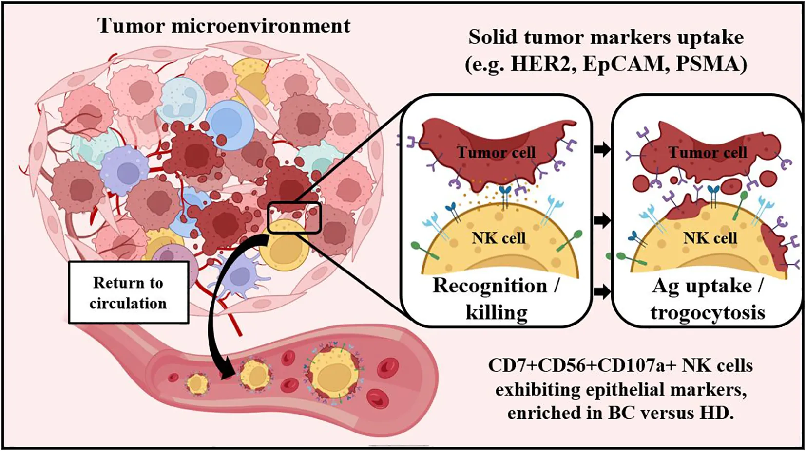 Human NK cells that encounter cancerous cells uptake epithelial antigens (Ag) and can be identified on blood of breast tumor patients comprising specific NK subsets.