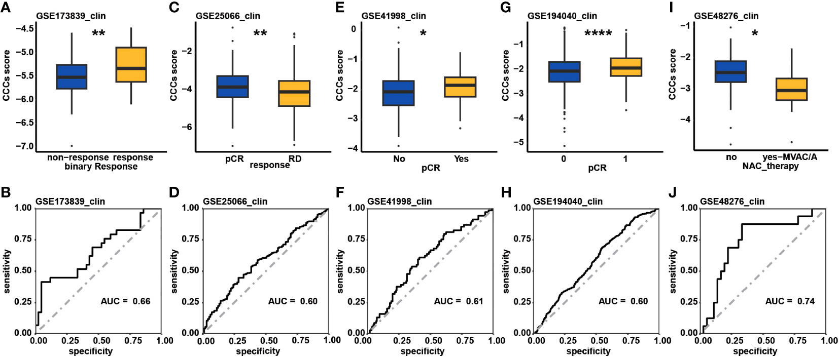Evaluation of therapeutic response underlying CCC signature