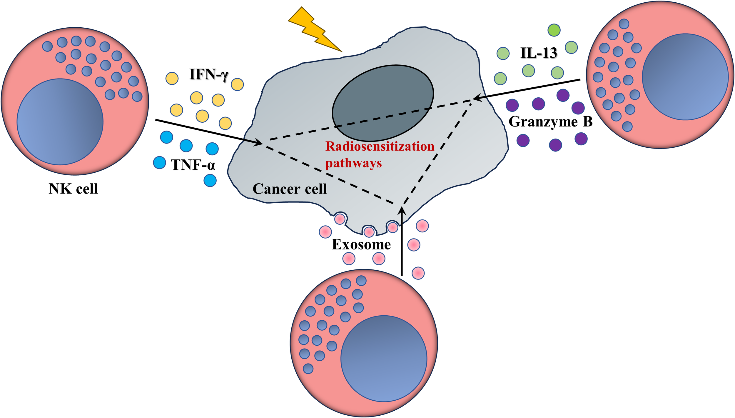 3.1 Secretion of cytokines or cytotoxic granules enhance tumor radiosensitivity