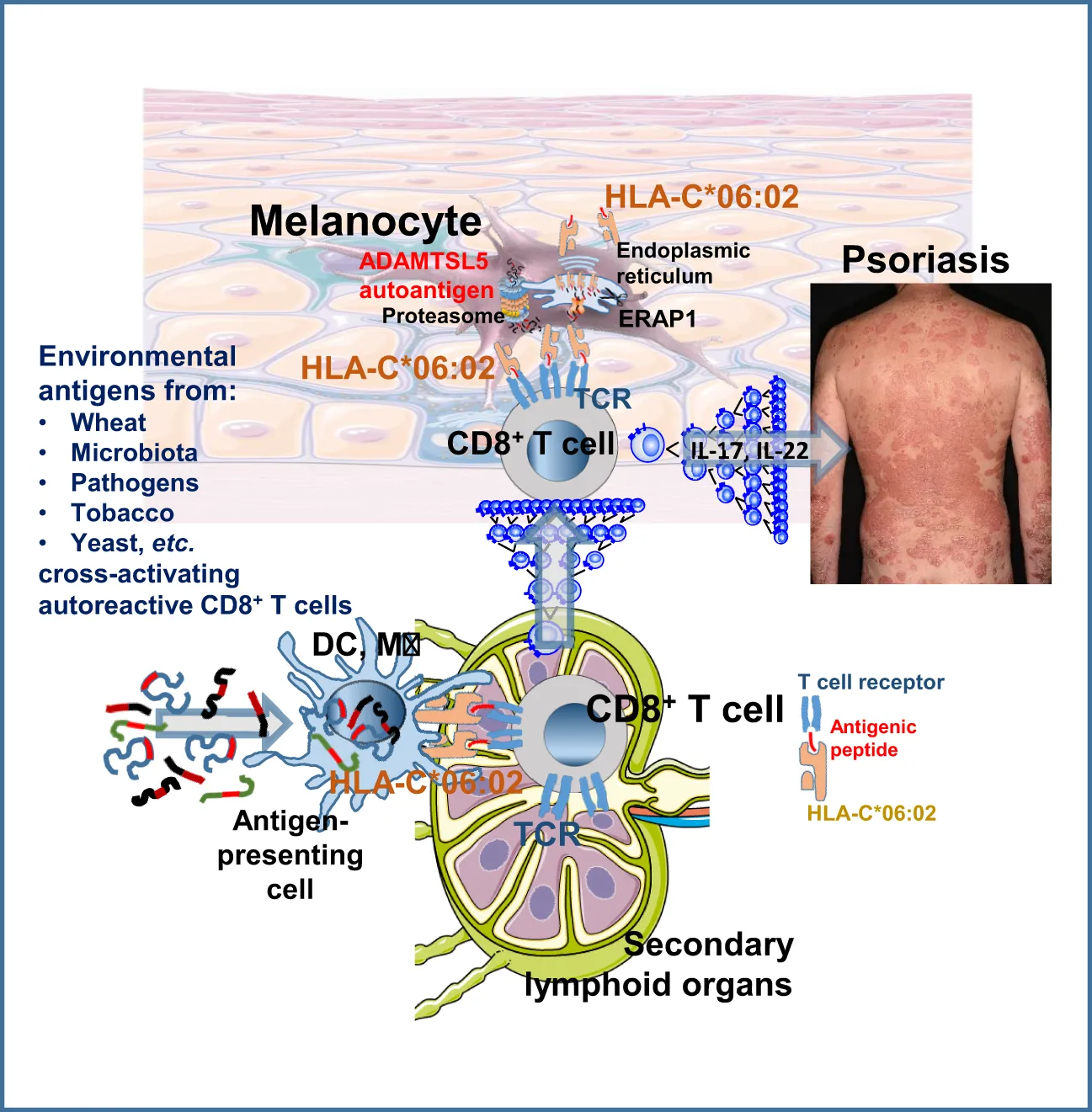 psoriasis, pathogenic T-cell receptor, T-cell receptor polyspecificity, autoimmune response, environmental antigens, diseases triggers, HLA-C*06:02