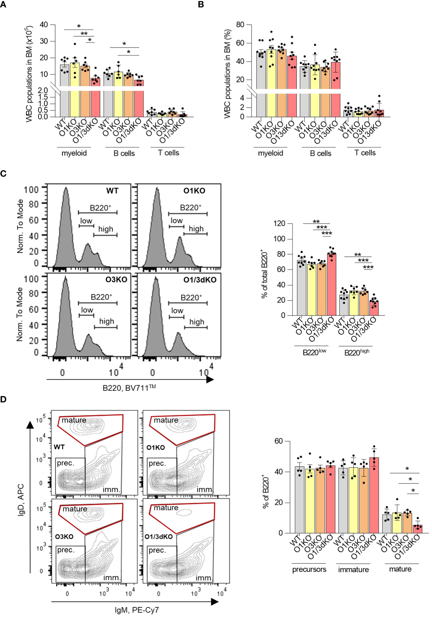 3.3 The BM of O1/3dKO mice is deficient in mature B cells