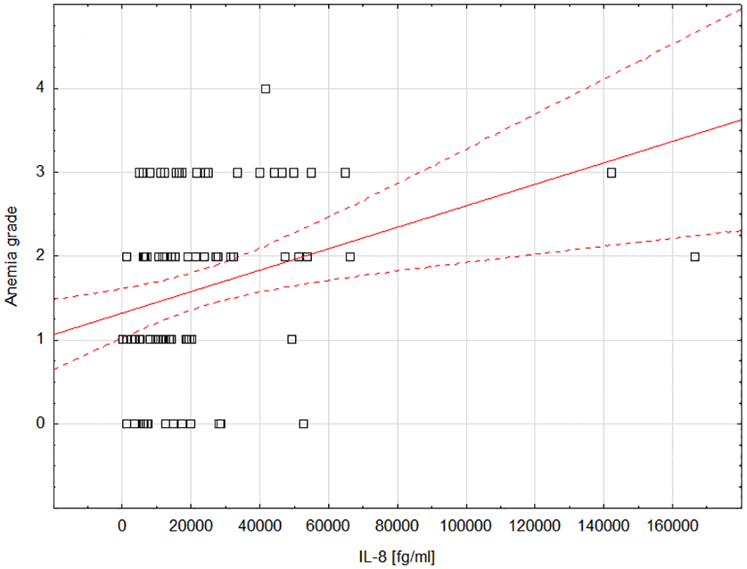 We employed MedCalc software (version 15.8 PL) and Statistica (version 13 PL) for statistical analysis. Categorized or dichotomized variables were expressed in absolute numbers and percentages. To evaluate the normality of continuous data distribution, we applied the DâAgostino-Pearson test. Given that our continuous variables were not normally distributed, we used the median, interquartile range, and range (minimum-maximum) as dispersion measures and applied non-parametric tests accordingly. The Mann-Whitney U test assessed the differences in cytokine concentrations in relation to specific treatment-induced toxicities. We used Spearmanâs rank correlation test to determine the relationship between cytokine levels and the severity of treatment-related toxicities. The Receiver Operating Characteristic (ROC) curves were instrumental in evaluating the diagnostic accuracy of the cytokines for predicting specific toxicities. In our report, âhighâ and âlowâ are relative terms referring to concentrations above or below the median, respectively.