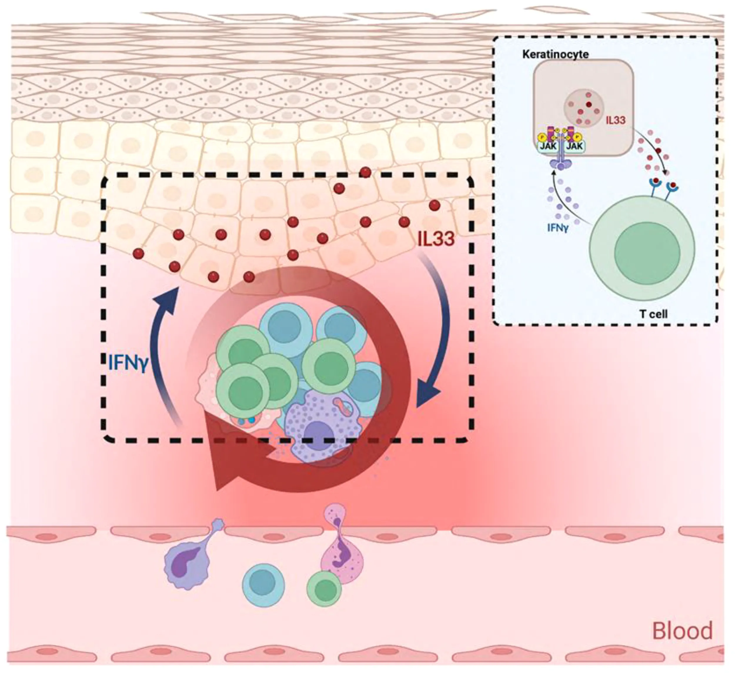 3.3 The IFN-γ-IL-33 loop between lymphocytes and keratinocytes