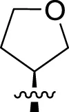 Unfortunately, we could not determine the crystal structure of the most active compound, 4S. However, an analysis of the pose adopted by compound 4R in the binding pocket of EBOV-GP revealed that the newly introduced oxolanyl ring, resulting from the SuFEx reaction, is positioned near the region where the β13-β14 loop (residues 190 to 214) is expected. This region has also been observed to be disordered in previous structures (34, 35). Structural analyses of toremifene bound to EBOV-GP have shown that this scaffold binds at the same site at the entrance of the binding pocket by expelling the DFF lid (residues 192–195) and positioning the A ring of the scaffold (Figure 1B) within this region (34). We propose that this flexible fragment could be modulating the enantioselectivity of the inhibitors identified in this work. However, additional experiments are required to verify this hypothesis.