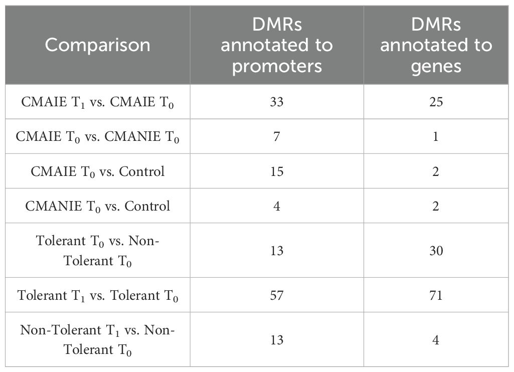 Significant DMRs were also identified between T0 and T1 in the CMAIE group (Table 2). However, greater emphasis should be placed on interpreting these differences in relation to the oral food challenge results.