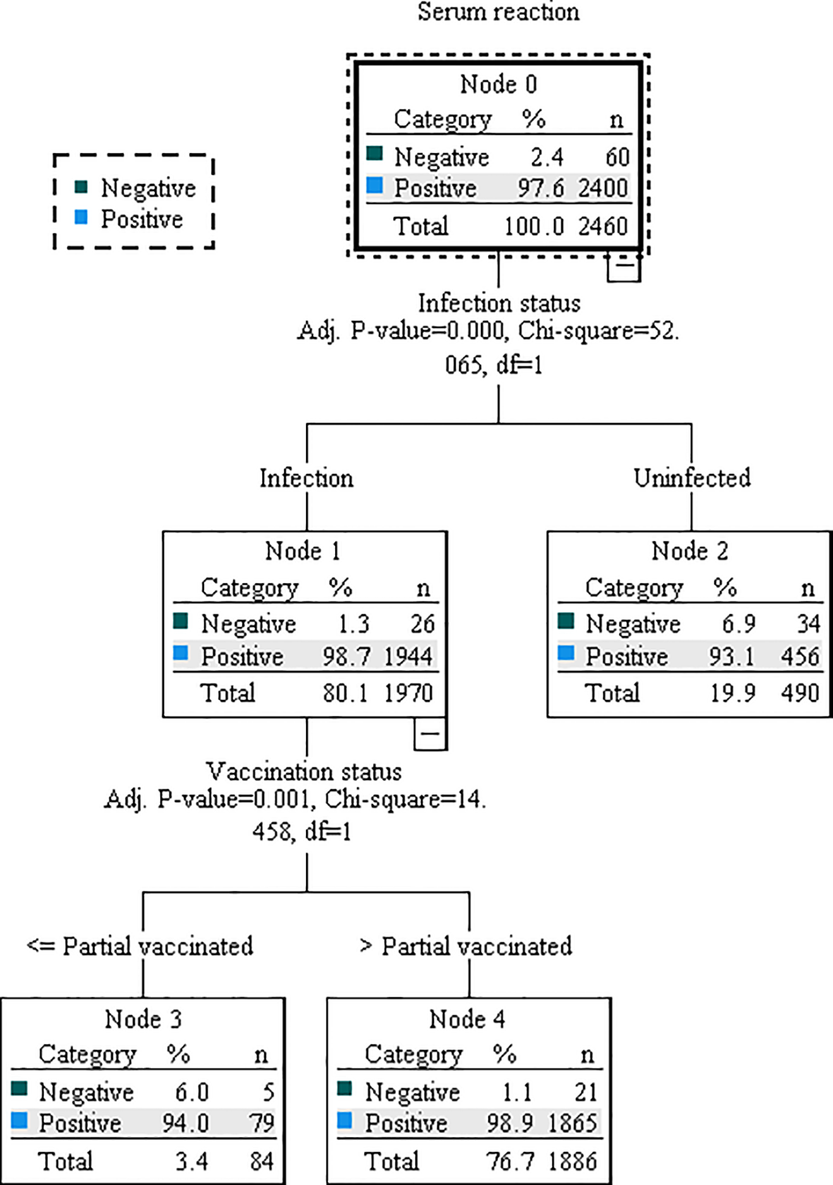 Anti-SARS-CoV-2 IgG antibody levels were measured using chemiluminescent microparticle immunoassay (CMIA). Multivariate regression analyses assessed factors influencing antibody levels, and decision tree models predicted variable priorities.