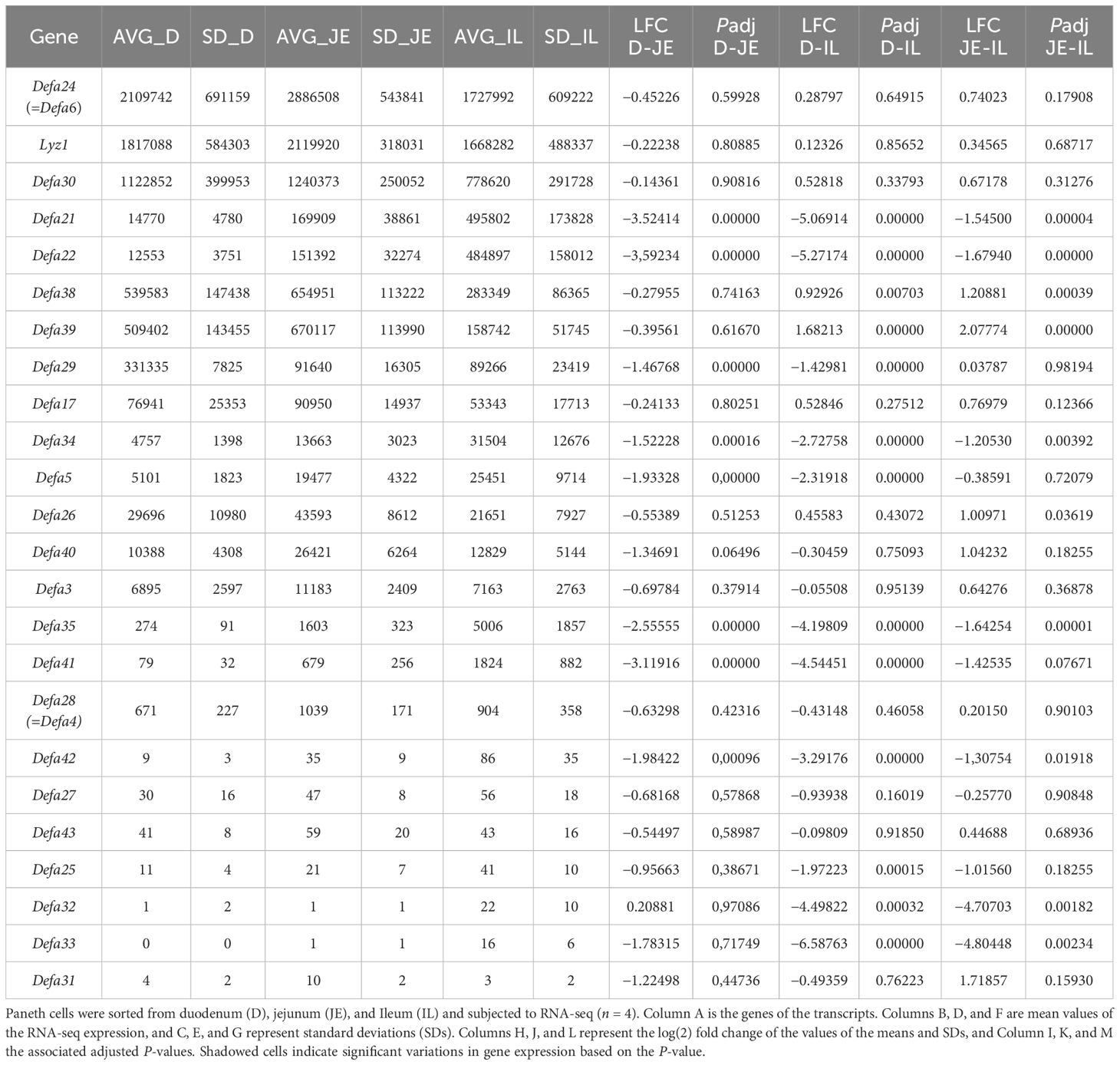 Table 2. Gene expression values of Paneth cell–specific transcripts in duodenum, jejunum, and ileum.