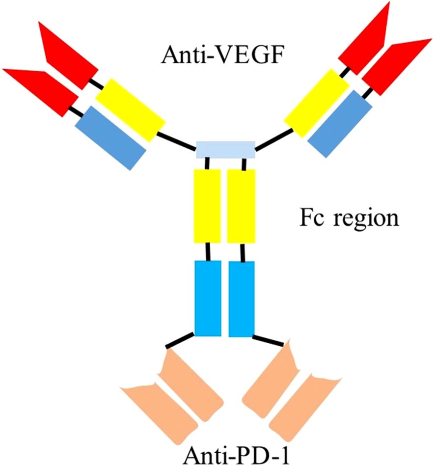 Figure 1. This figure illustrates the tetravalent binding configuration of ivonescimab, an IgG-scFv fusion BsAb developed by Akeso Biopharma. This figure is created with BioRender.com.