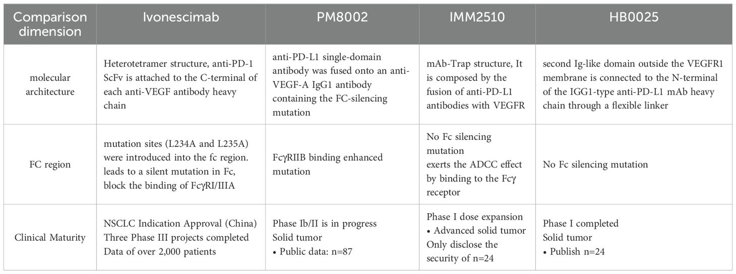 Table 1. Comparison of Ivonescimab with other anti-VEGF/PD-1(L1) BsAb in molecular architecture and clinical maturity.